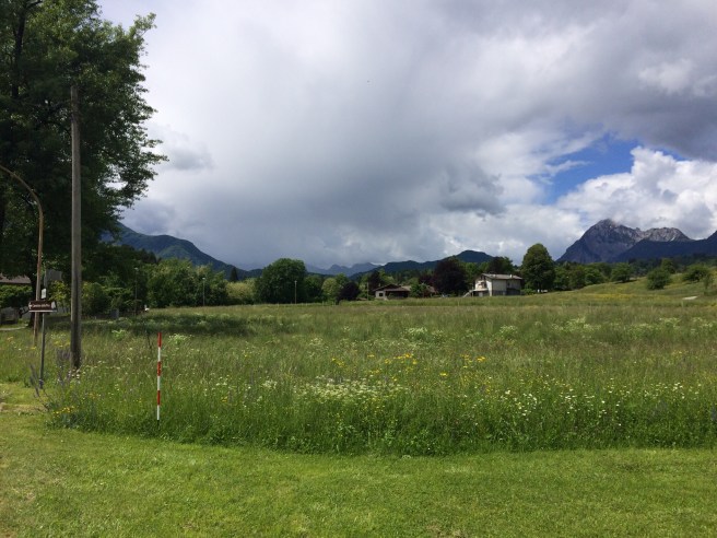 En fin de matinée, les nuages sur les montagnes s’amoncelaient déjà sur les montagnes vers lesquelles je me dirigeais. Je ne regrettais donc pas d’avoir opté pour une étape courte.