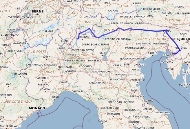 31 mai : Tirano – Poschiavo, par Roncaiola, La Dogana, Viano, Ginetto, Garbella, Cantone, Pagnoncini et Annunziata. 15 km à vol d’oiseau, 21 km au podomètre. Point le plus élevé : 1370 m (La Dogana), point le plus bas : 430 m (Tirano).